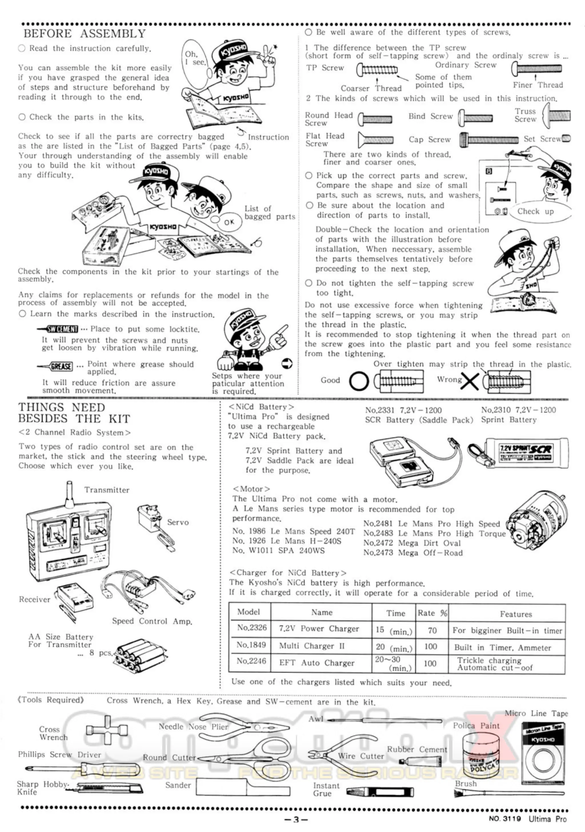Kyosho Ultima Pro - Before Assembly; Things Need Besides the Kit; Motor