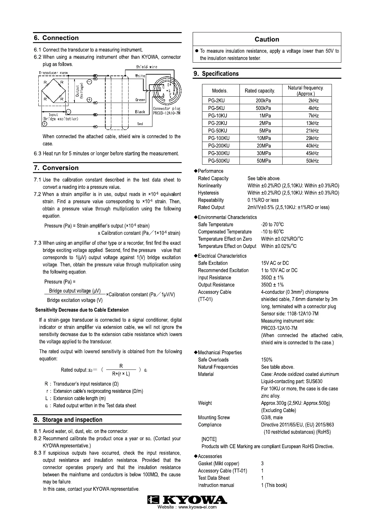 Rated Output 2mV/V±0.5% (2,5,10KU: ±1% RO or less)