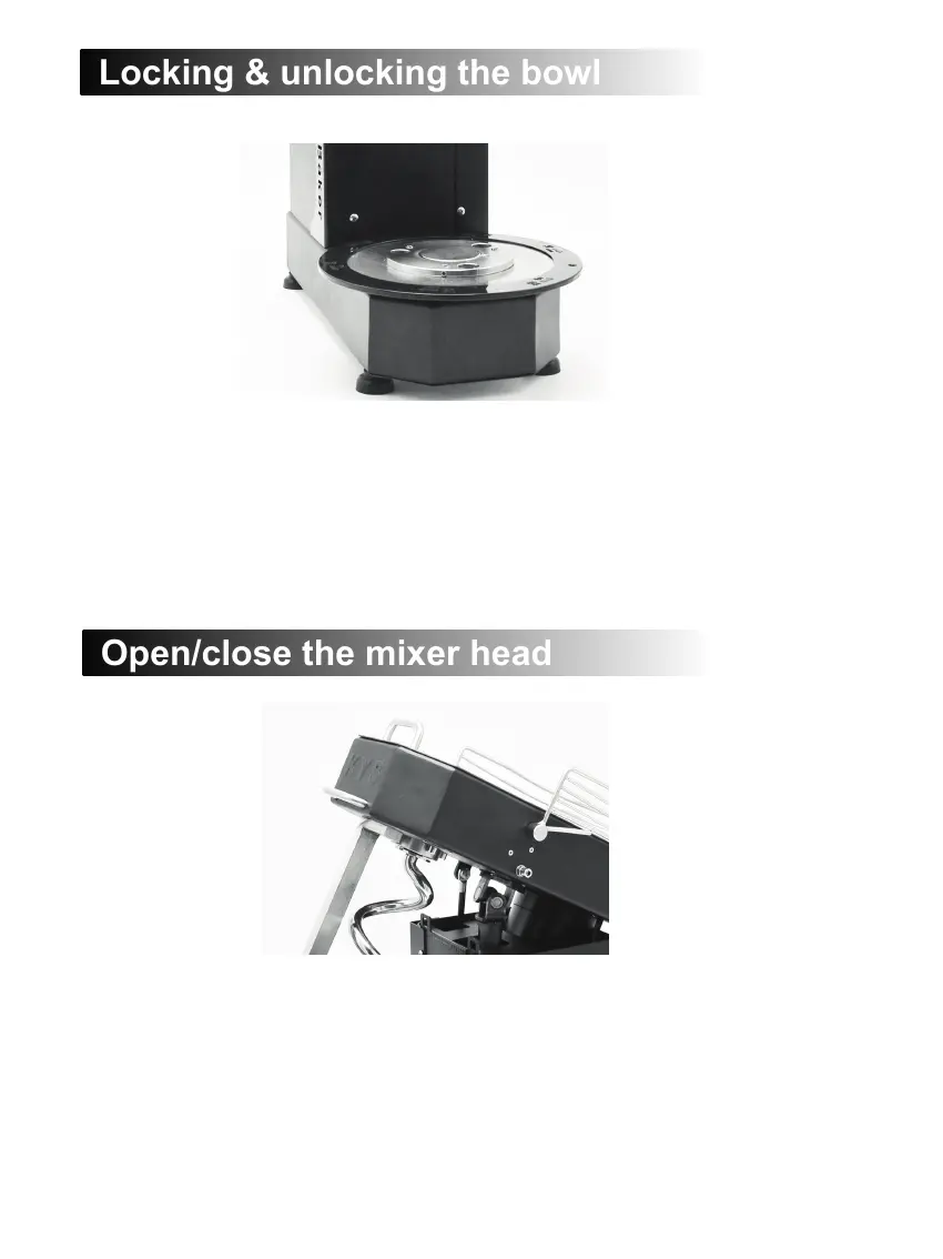 cut out in the plate. Turn the plate to lock or unlock the mixing bowl - the directions are shown by