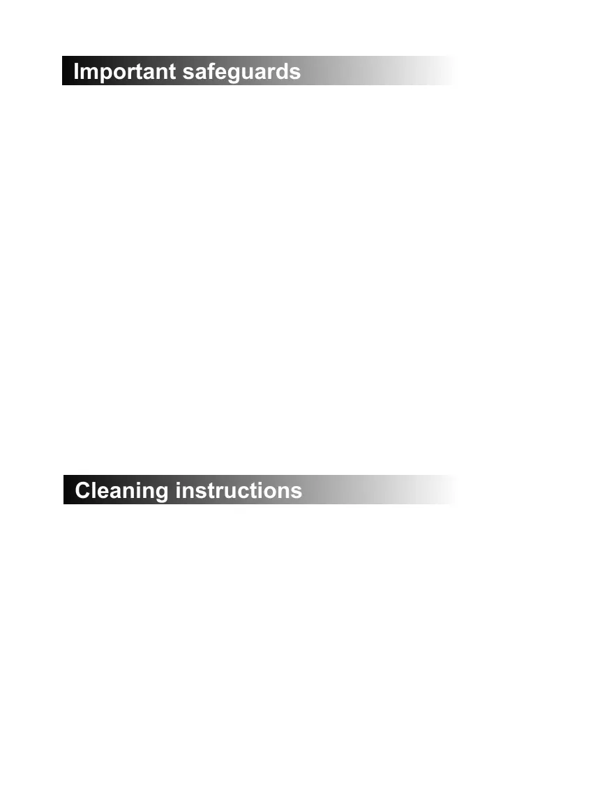 9. Do not let the cord hang over the edge of table or counter.