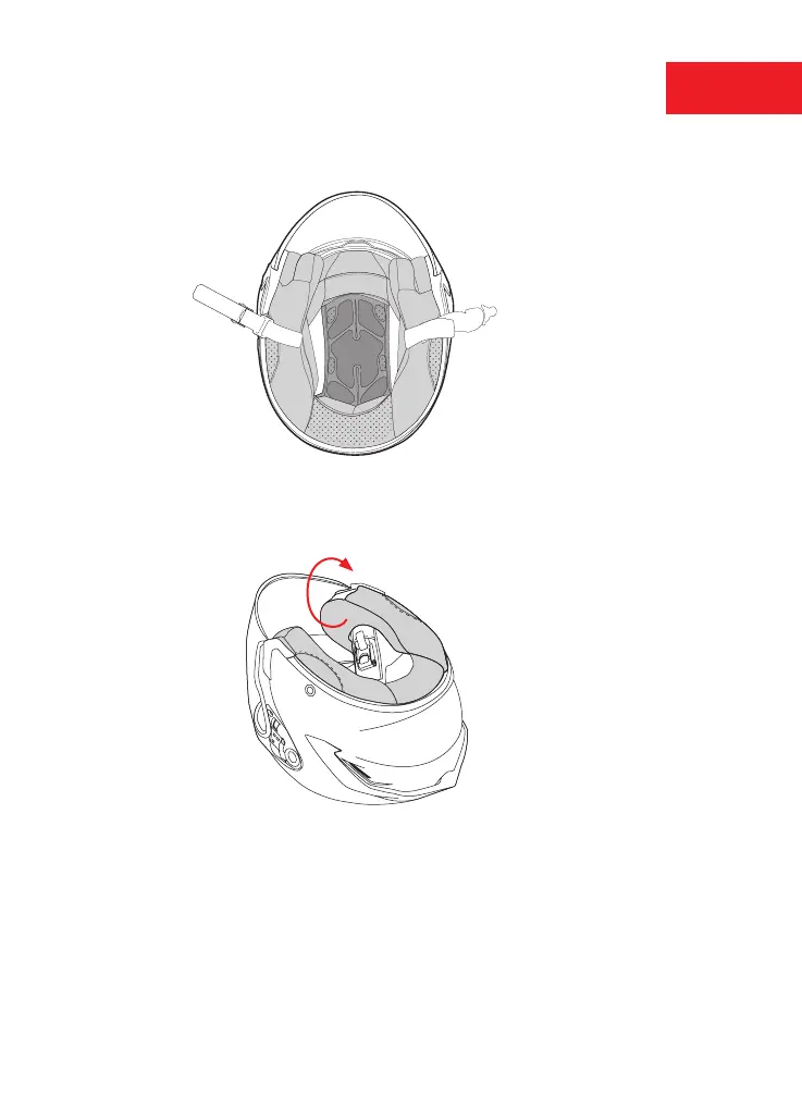 le trou de passage rouge (N). Placer la partie arrière de la mousse de joue sur la partie fixe de