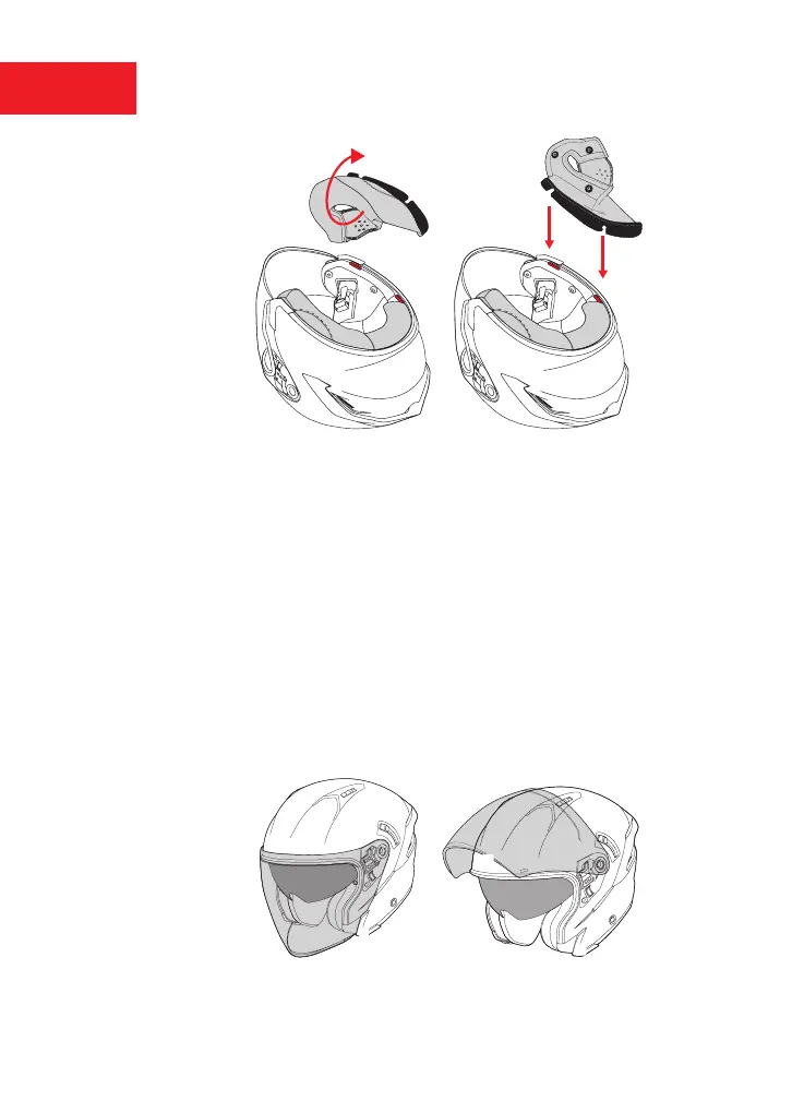 La visière (Q) doit être actionnée uniquement en utilisant le l’ergot de levage (R). Ne l’ouvrez pas
