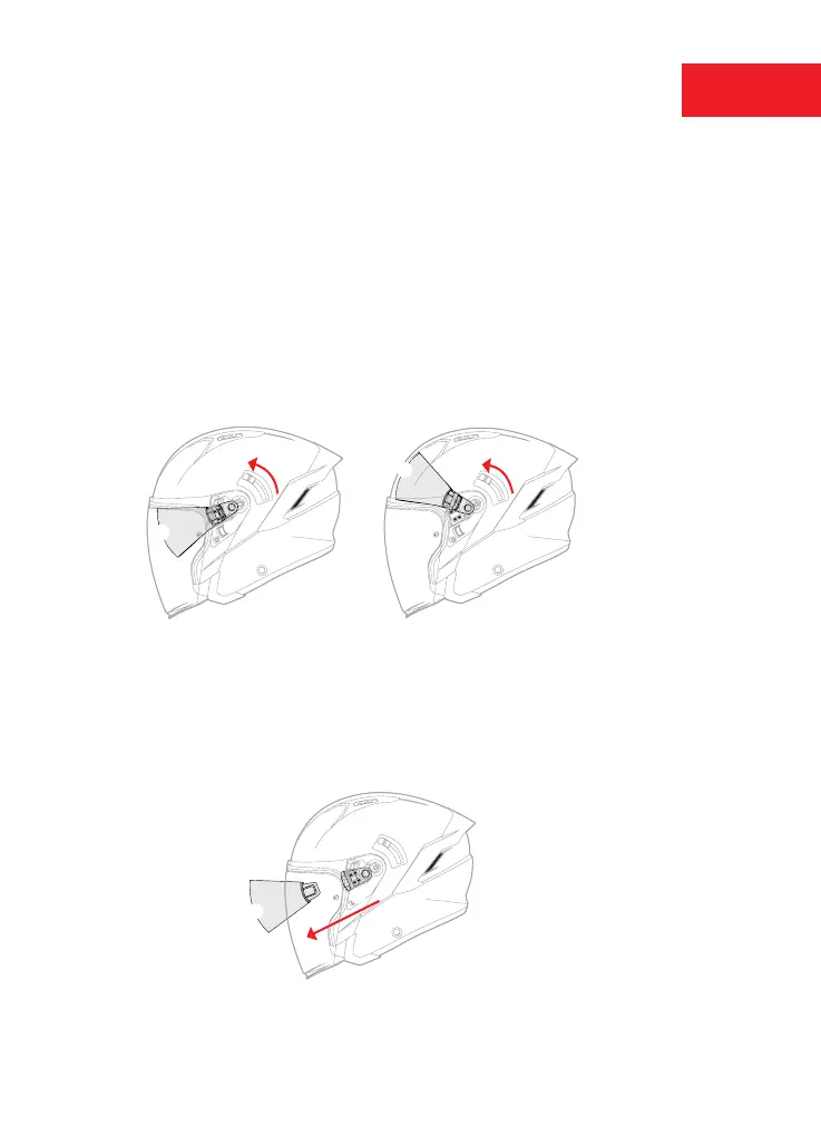 Ouvrir la visière jusqu’à ce qu’elle soit complètement ouverte.