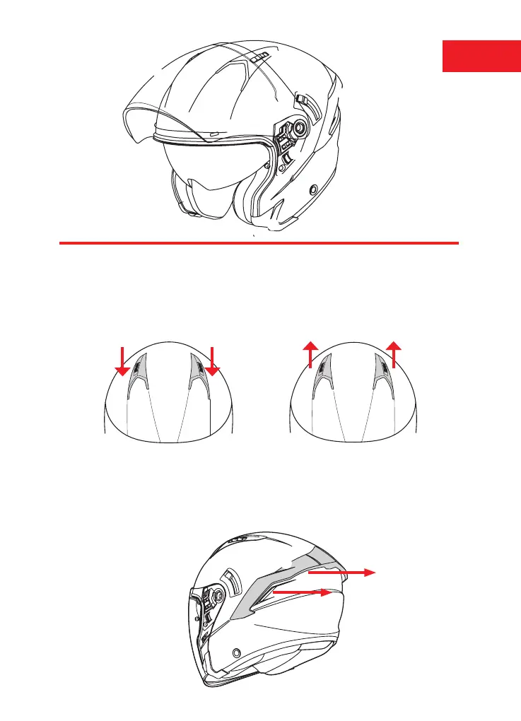El ujo de aire entrará por la parte frontal superior del casco desplazando el cursor de la toma de