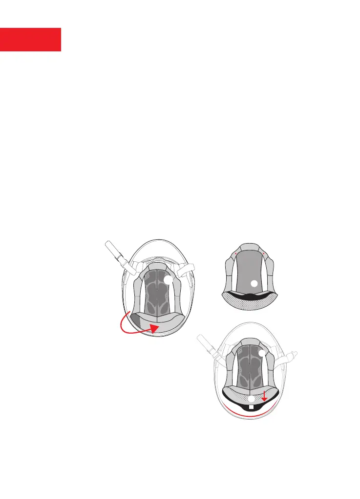 Ponga la calota pequeña (H) dentro del casco controlando el sentido de montaje.
