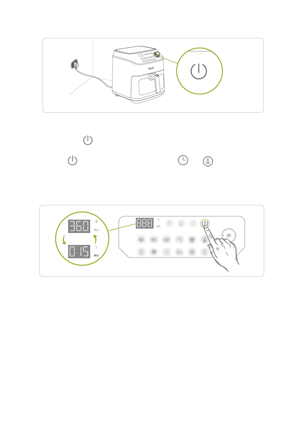 • The LED Display will show 182 °C and 15 Min alternately every 3 seconds.