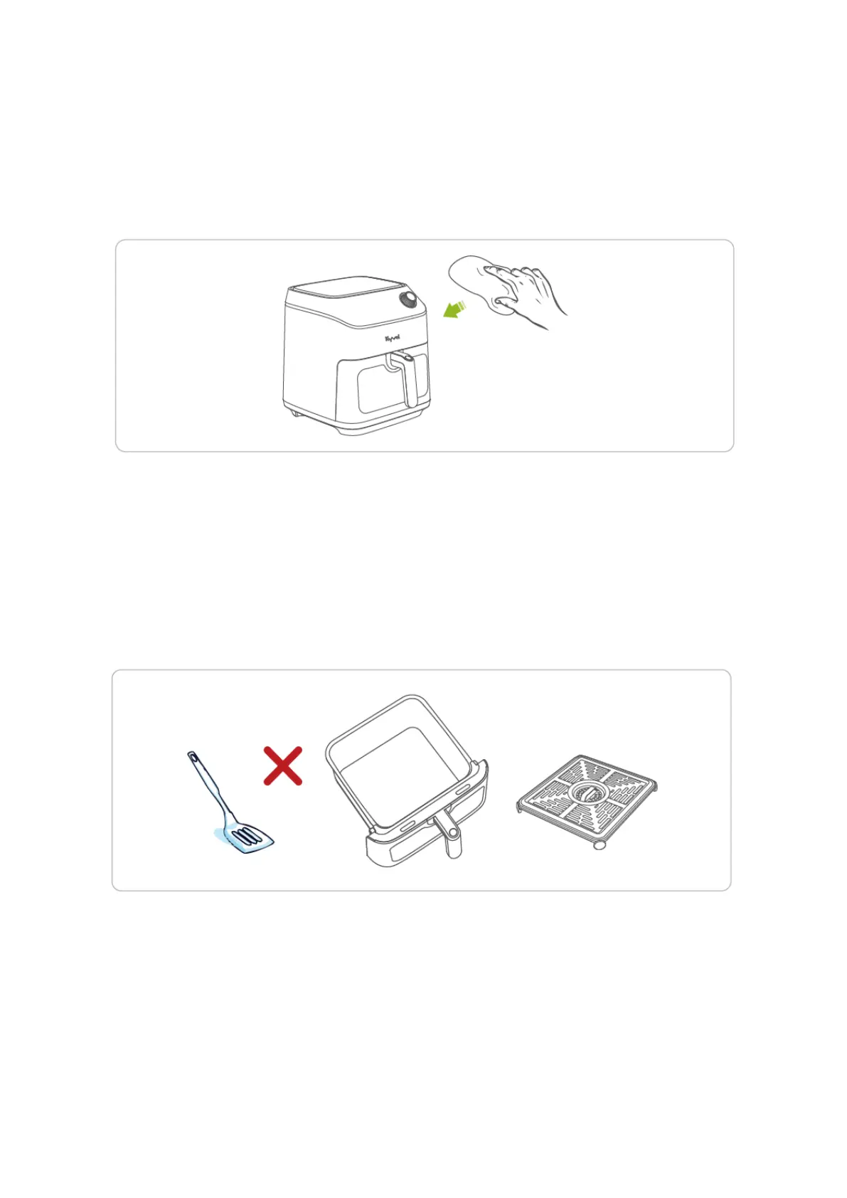 Egy tiszta és nedves ruhával törölje át a légsütő külső felületét.