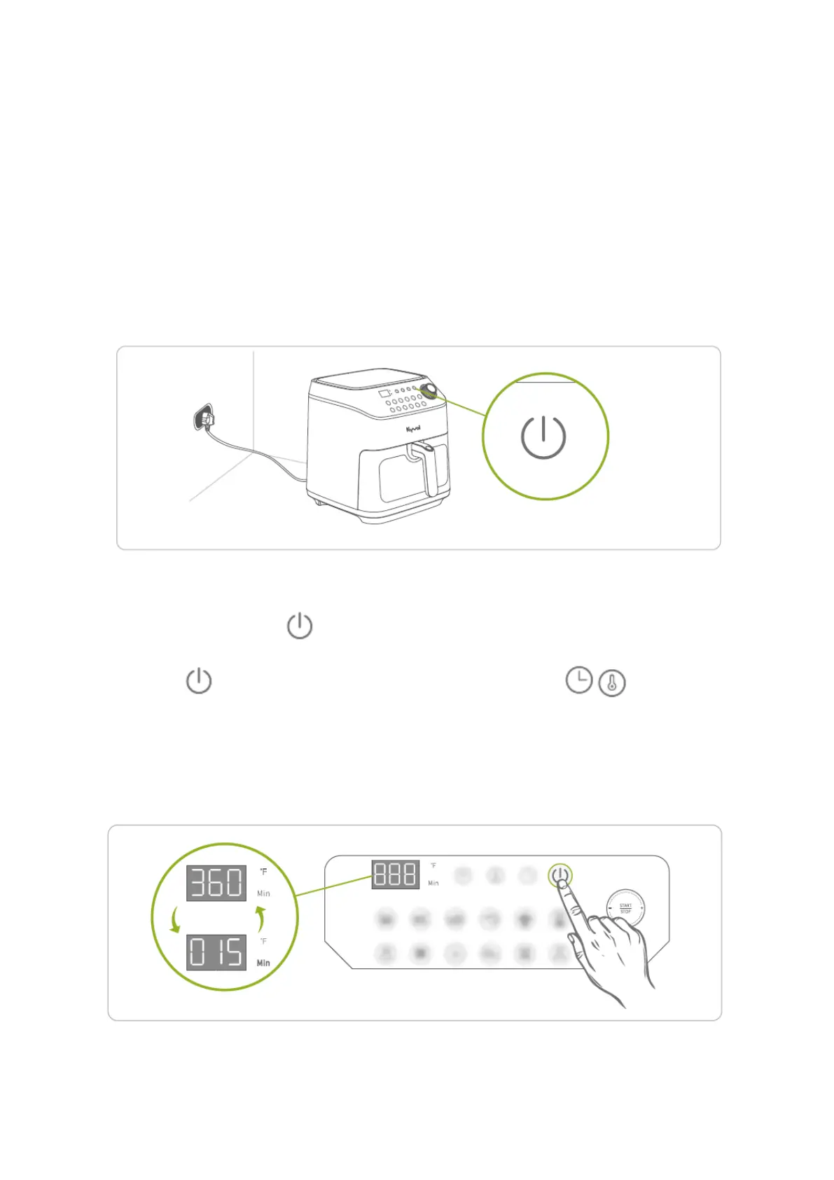 Schritt 2: Drücken Sie die Taste, um die Fritteuse einzuschalten.