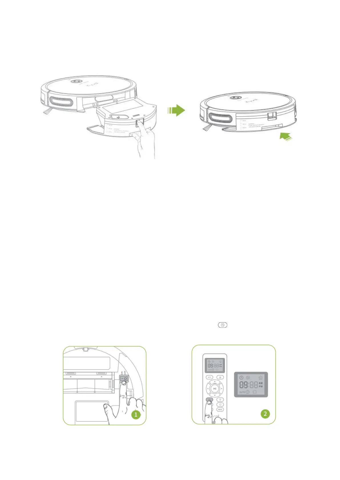 1. Keď sa robot nabíja alebo nepoužíva, vyberte nádržku na vodu.