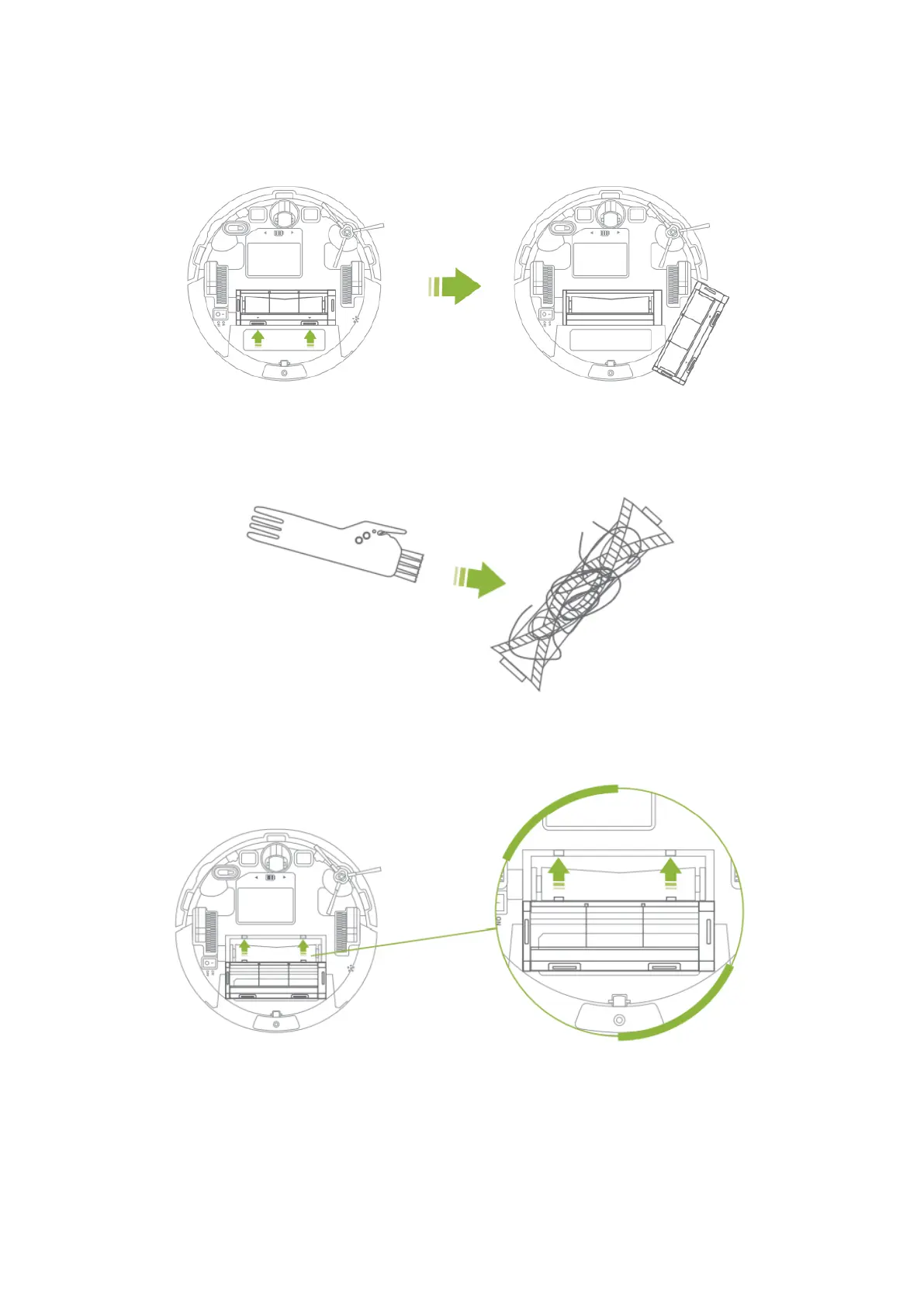 Pomocou čepele čistiacej kefy odstrihnite vlasy a odstráňte nečistoty pomocou kefy.