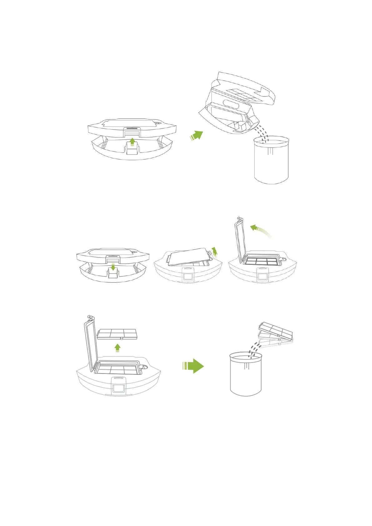 Nyissa ki a porgyűjtő felső fedelét, hogy a porgyűjtőt egy szemetesbe ürítse.