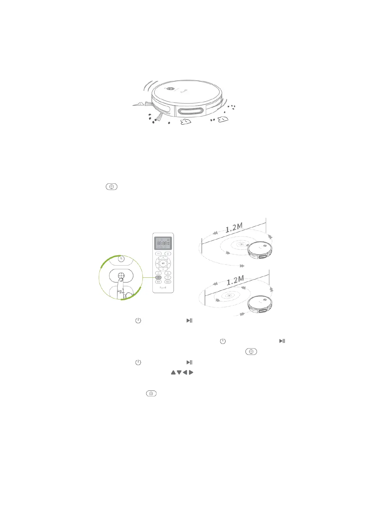 • Stisknutím tlačítka na robotu nebo na dálkovém ovladači pozastavíte