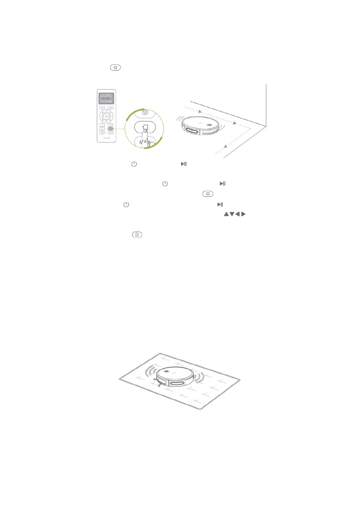 • Stisknutím tlačítka na robotovi nebo na dálkovém ovladači jej vrátíte zpět do