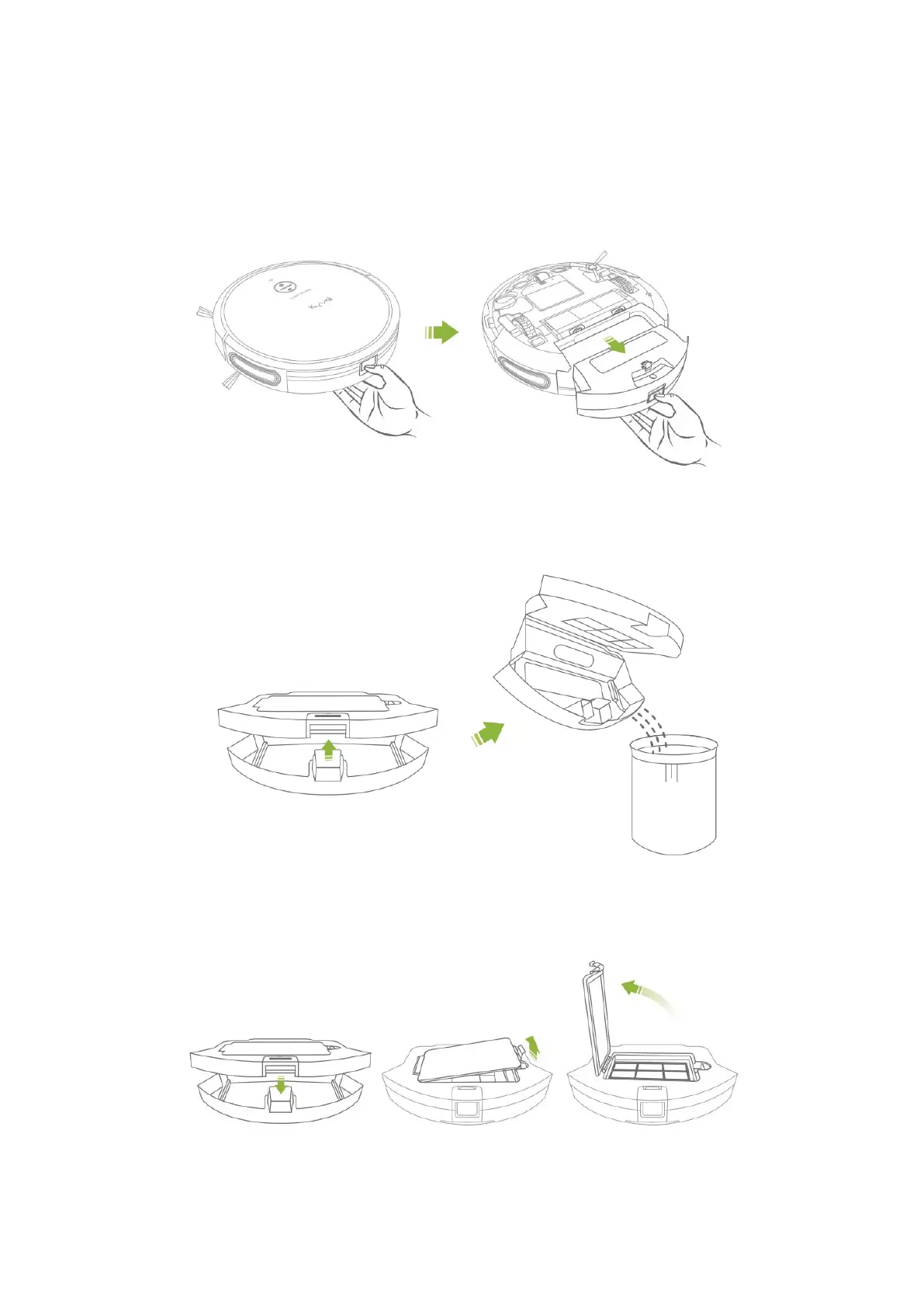 Otevřete horní kryt prachové nádoby a vyprázdněte ji do odpadkového koše.