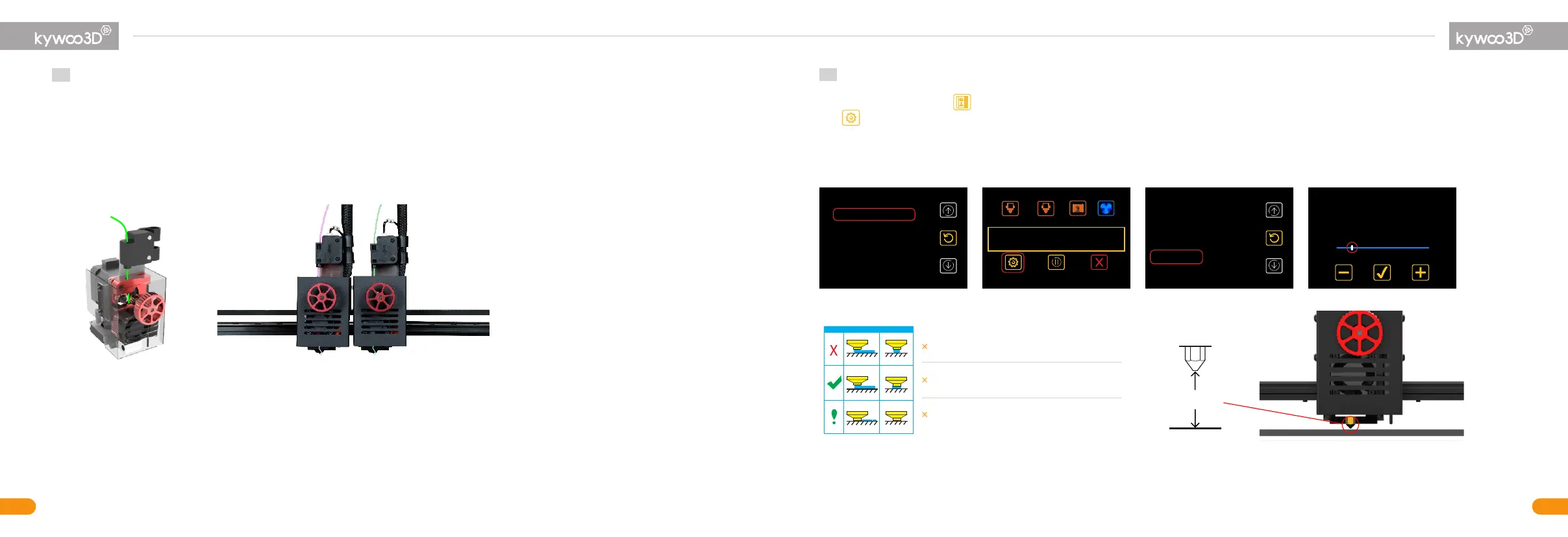 When the hotbed and the nozzles reach their set temperatures, lift the Z-axis by 5cm, and pass the filament through the filament detector, then