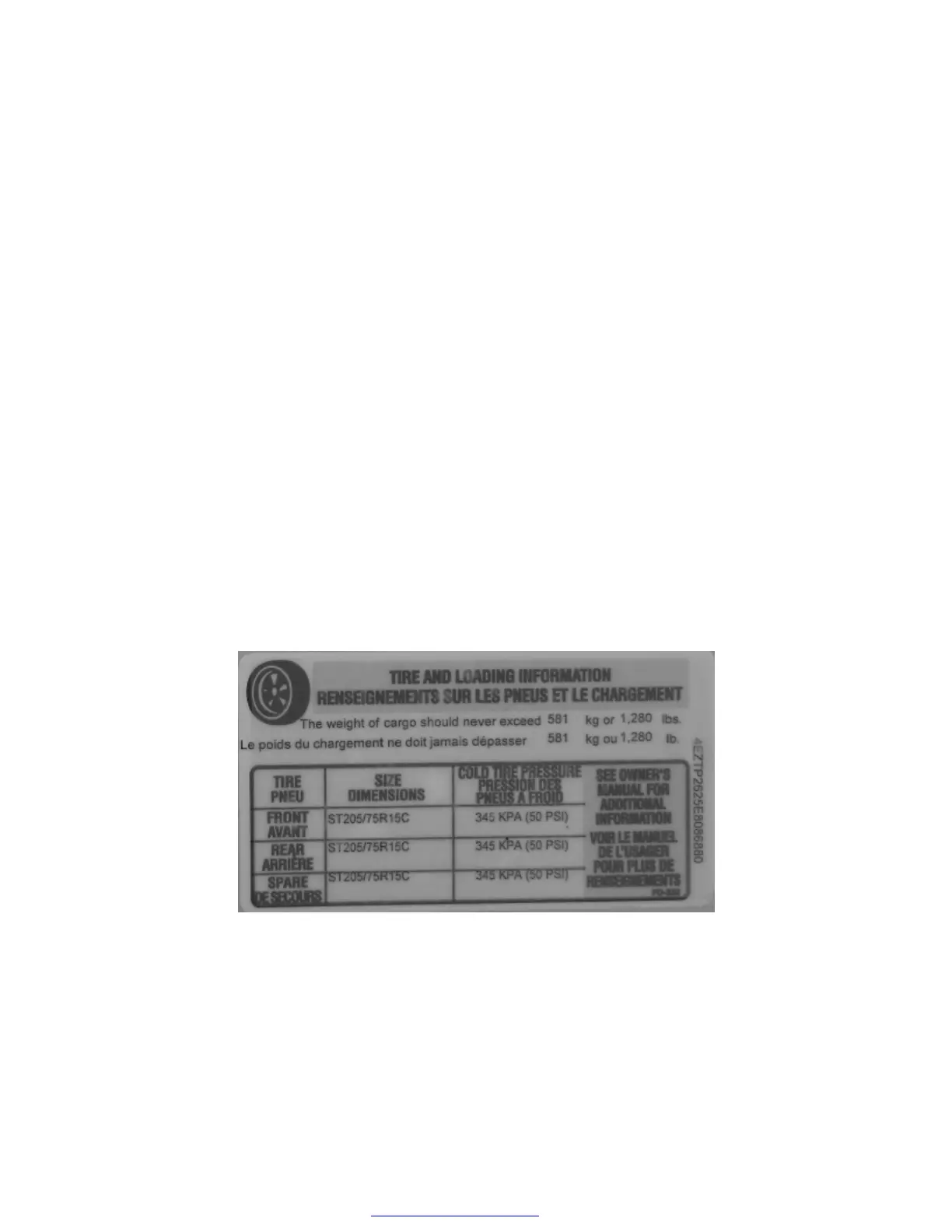 rating, tires, axle, springs, brakes, or wheels. One of these five is