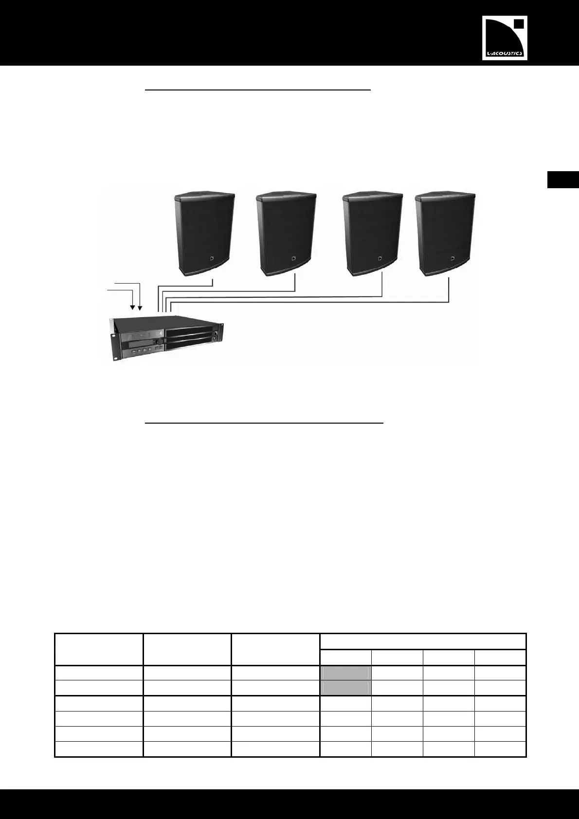 Chaque enceinte 12XT PASSIVE est raccordée à un canal d’amplification du contrôleur amplifié LA4, successivement de