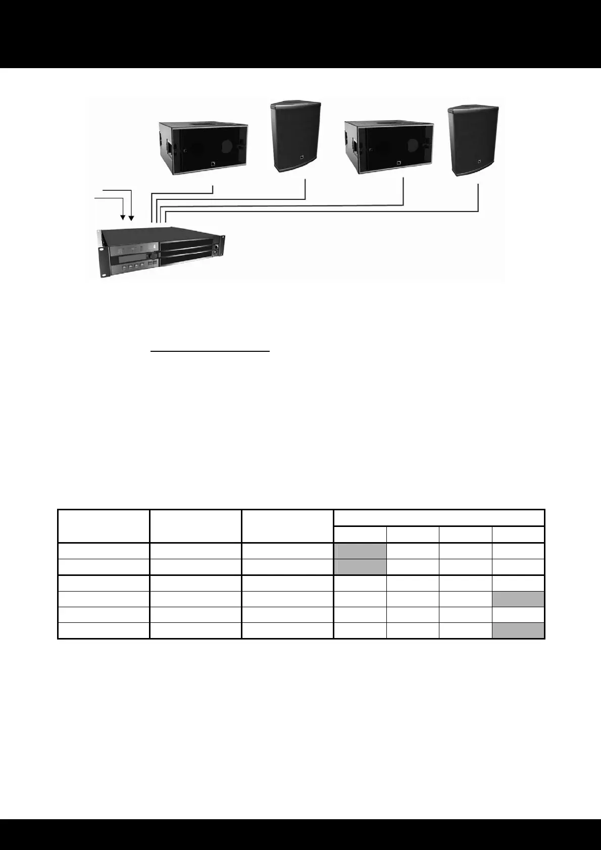 Figure 8 : Deux enceintes 12XT PASSIVES et deux SB118 raccordées au contrôleur LA4