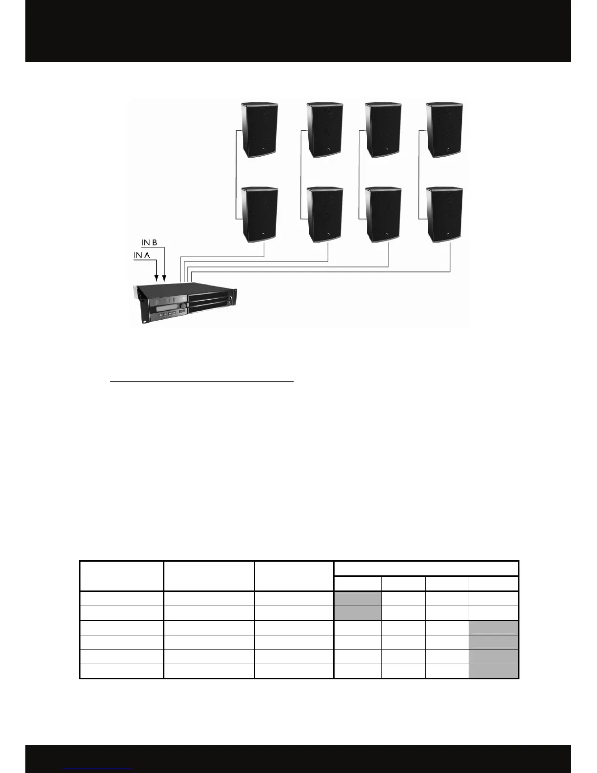 * IN: input signal, A: channel A, B: channel B, PA: passive enclosure.