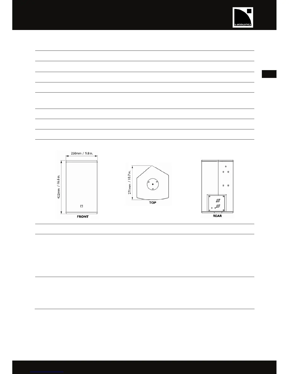 1 x 1.5’’ diaphragm compression driver coaxially-loaded by the 8’’ LF transducer