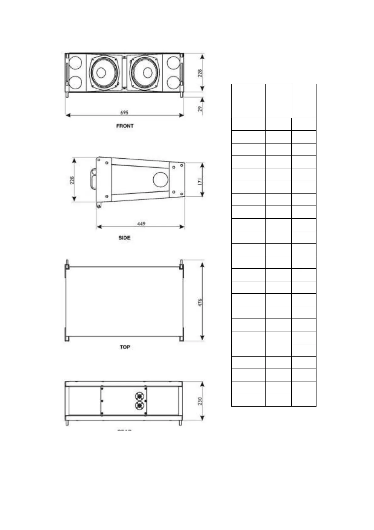 L-Acoustics dV-DOSC - Figure 90: DV-DOSC Enclosure - Line Drawing; Table 25: DV-DOSC Weight Per Number of Cabinets