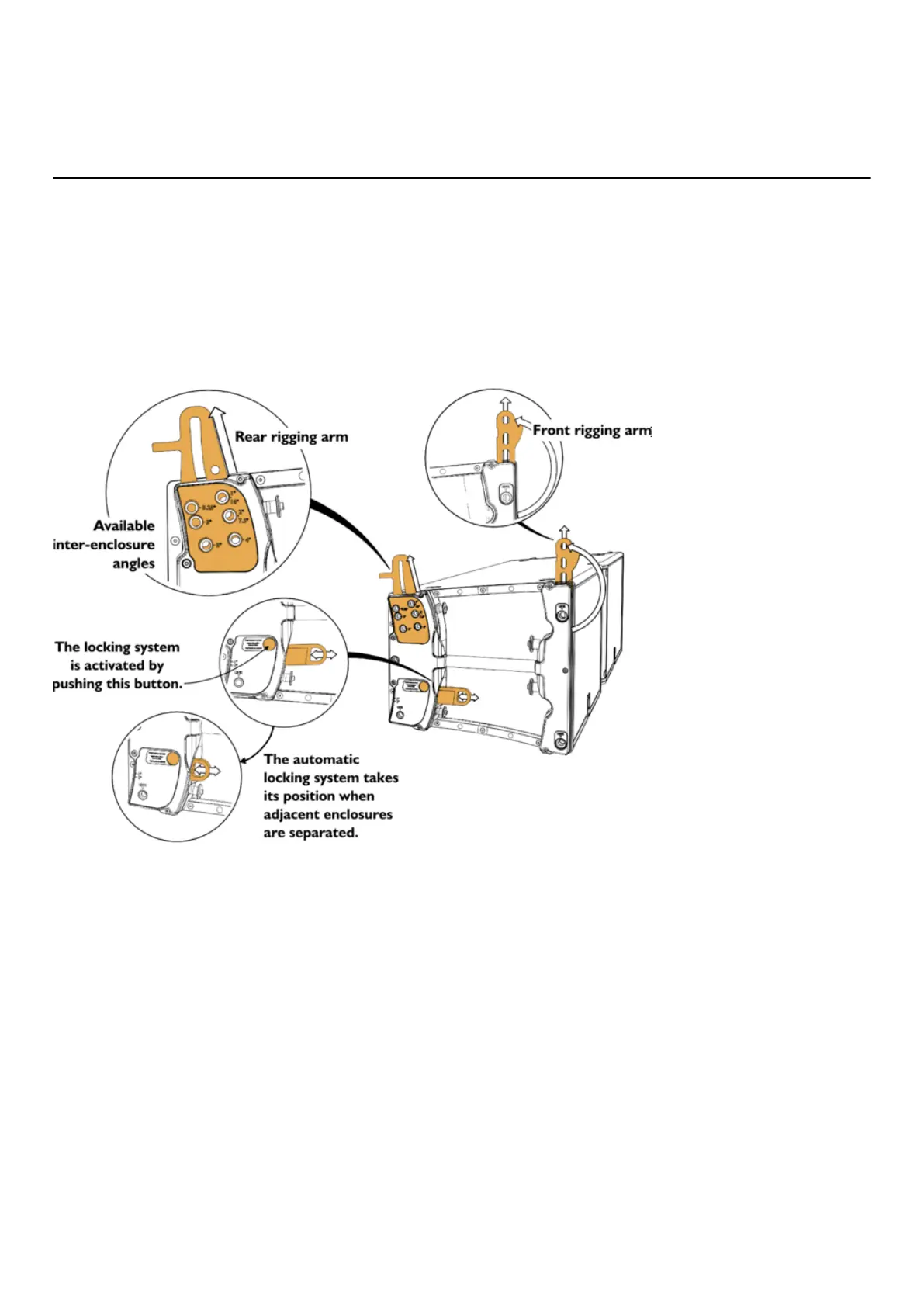 • At the front, a rotating arm provides a xed point around which the enclosure can freely rotate until its connection at
