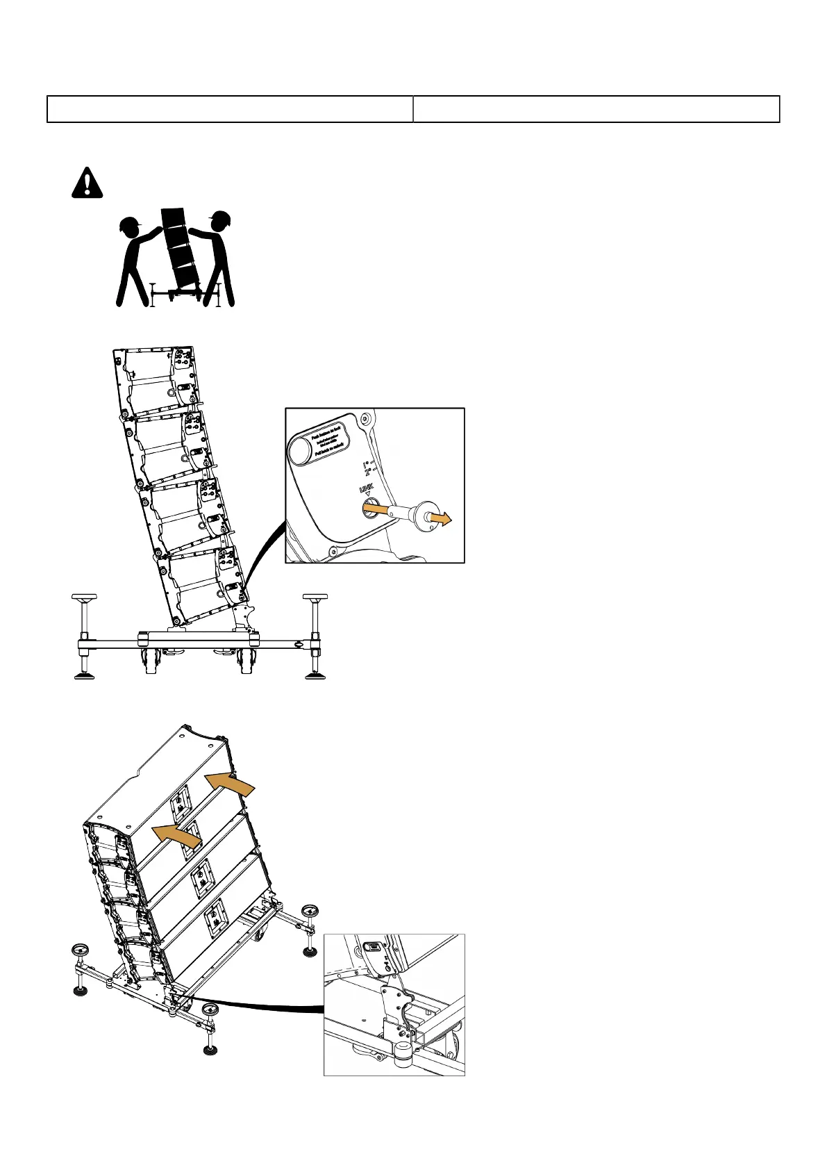 When the rear rigging arms are unpinned, hold the enclosures on both sides.
