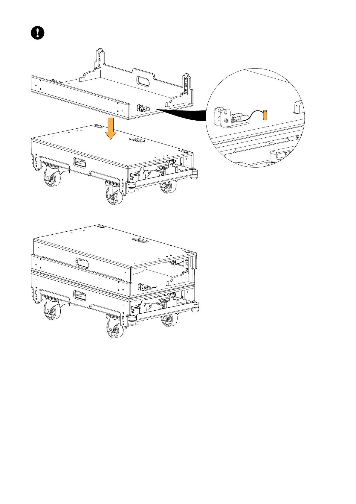 4. Repeat steps 1 to 3 until each K3-CHARIOTLID is stacked on K3-CHARIOT.