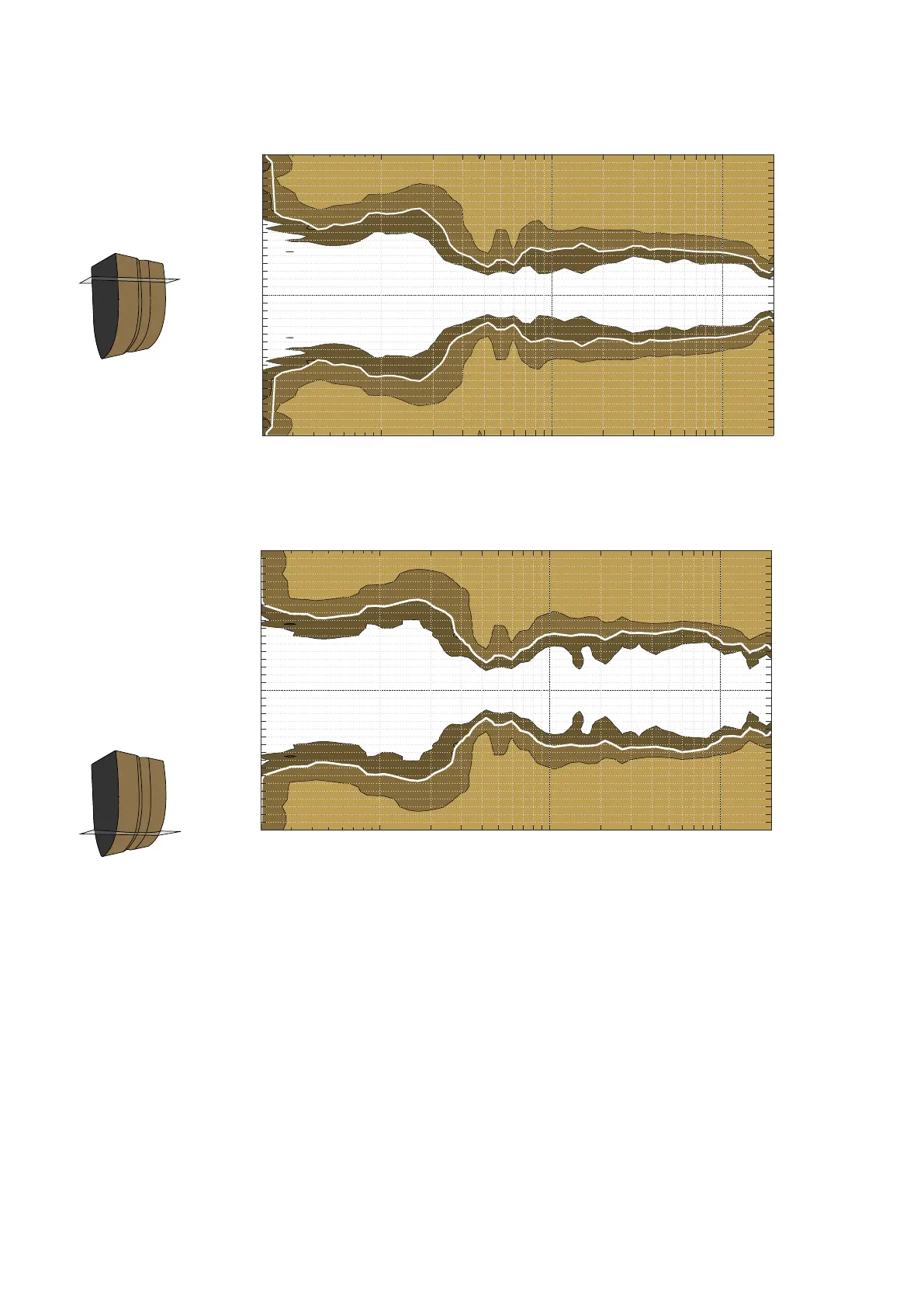 symmetric or 90° asymmetric (-6 dB) depending on the fins settings and (lower part) progressive from 110° to 140°.