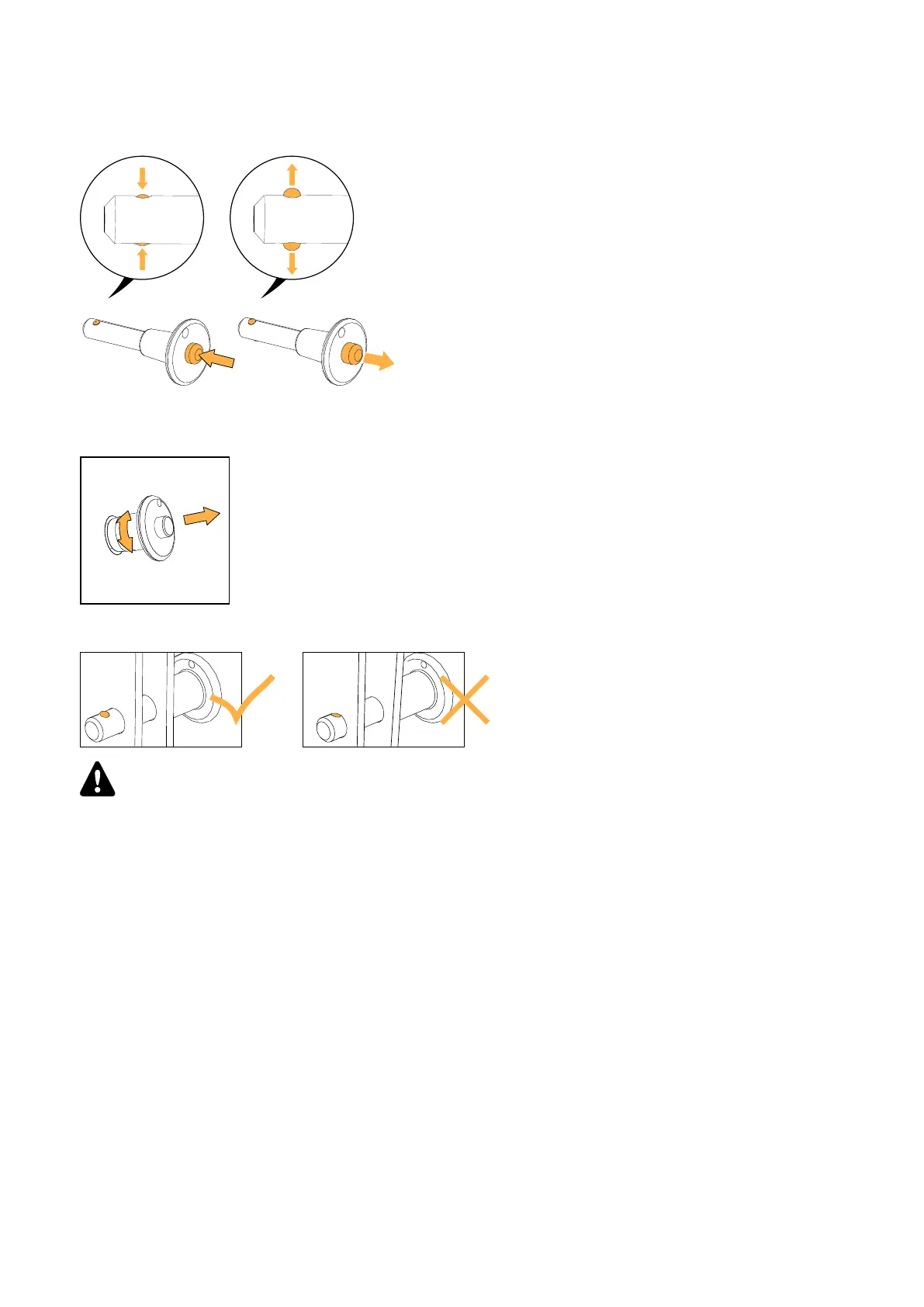 3. Insert the pin in each storage and rigging hole. Pull and rotate the pin.