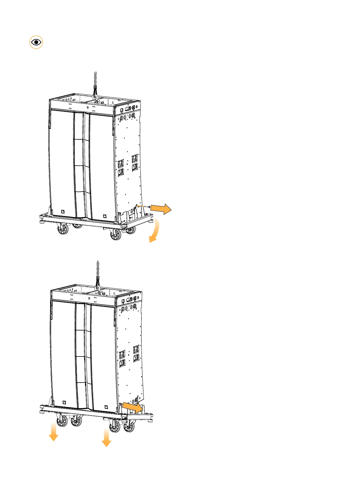a) Hold the chariot with one hand. Remove both back pins.
