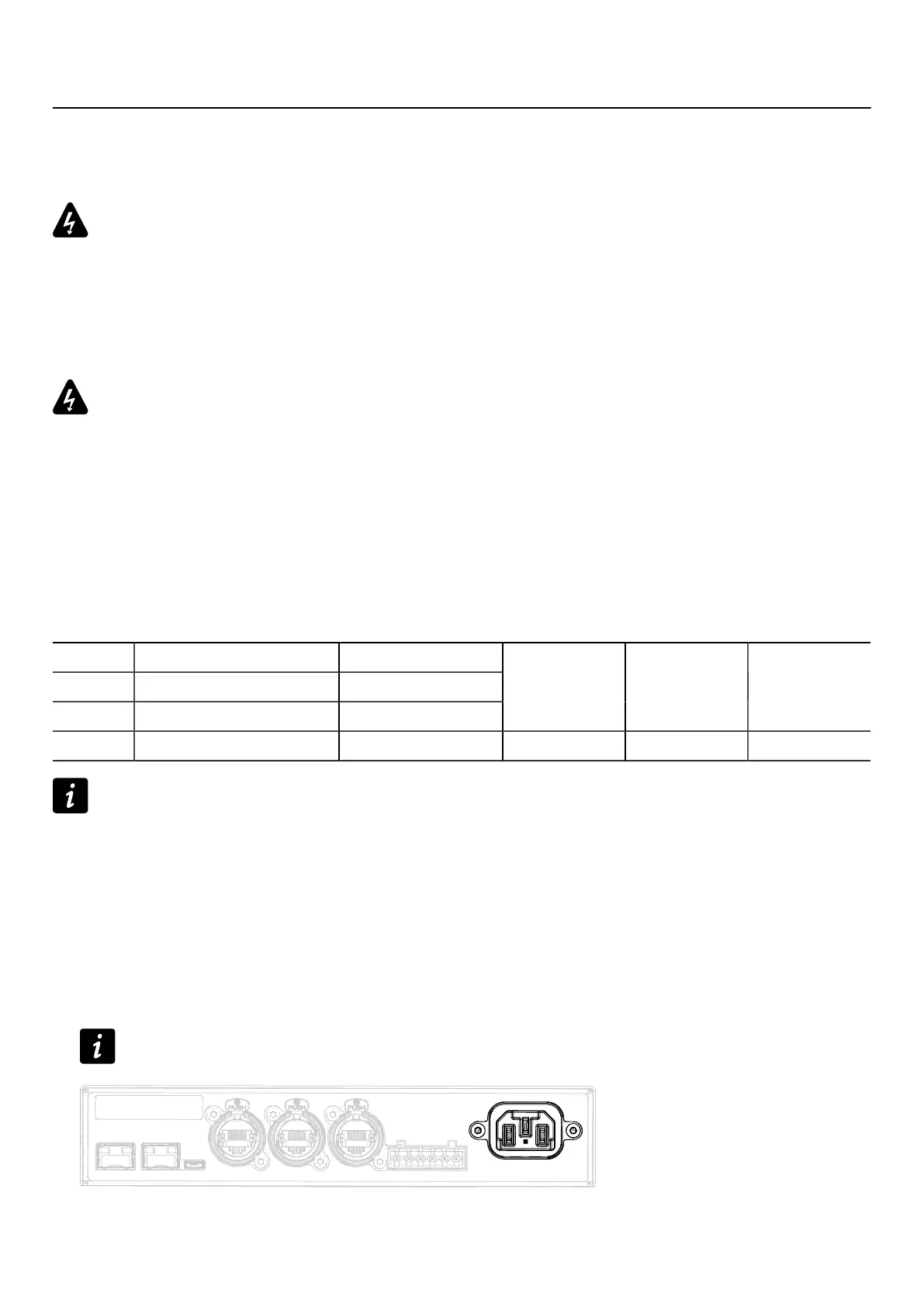 The removable IEC cord is tted with a female IEC C13 connector with V-Lock at one end and a country-specic plug at