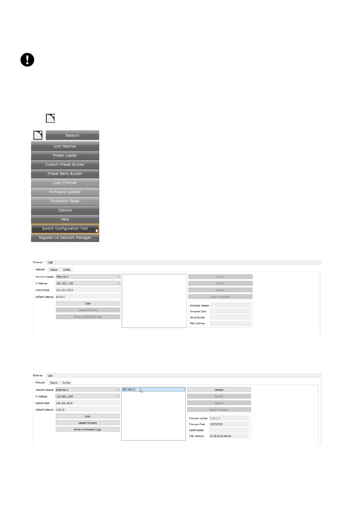 The Switch Conguration Tool is the only way to update the rmware of LS10.