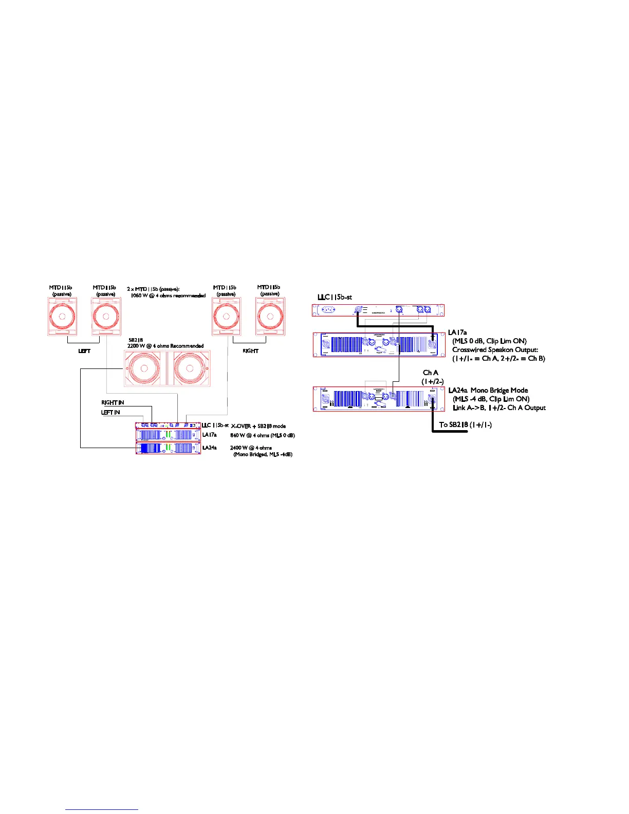 Figure 14a: MTD115b (passive) FOH System Block Diagram (mono subs)