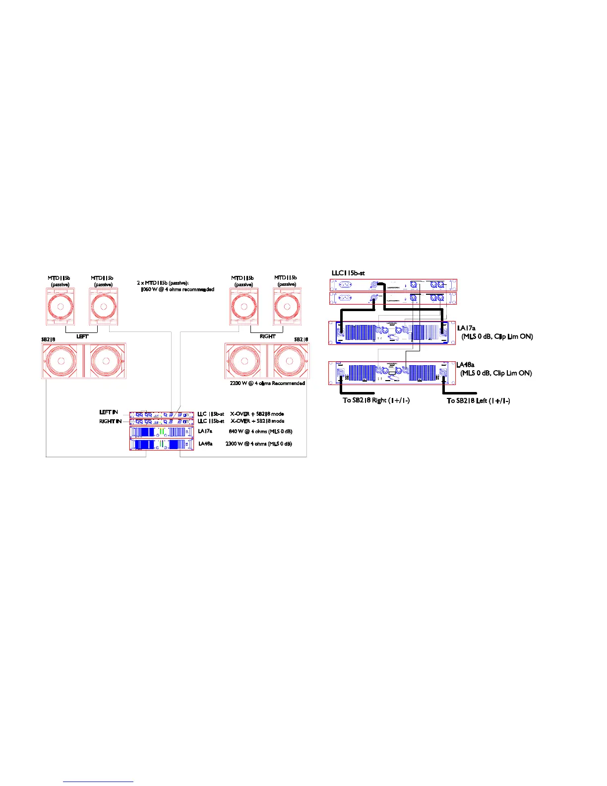 Figure 15a: MTD115b (passive) FOH System Block Diagram (stereo subs)
