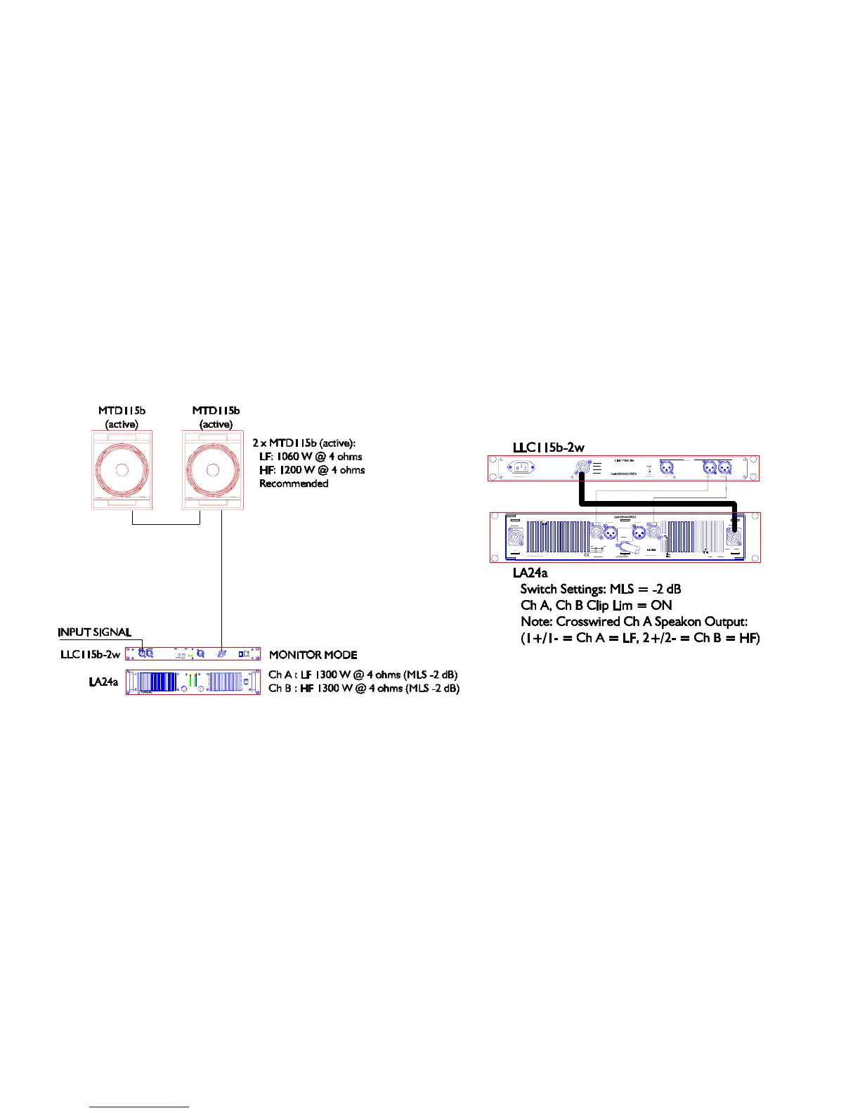 L-Acoustics MTD115b - Mtd115 B (ACTIVE) FLOOR MONITOR SYSTEM; Figure 16 A: Mtd115 B (Active) Floor Monitor System Block Diagram; Figure 16 B: Mtd115 B (Active) Floor Monitor System Cabling Detail