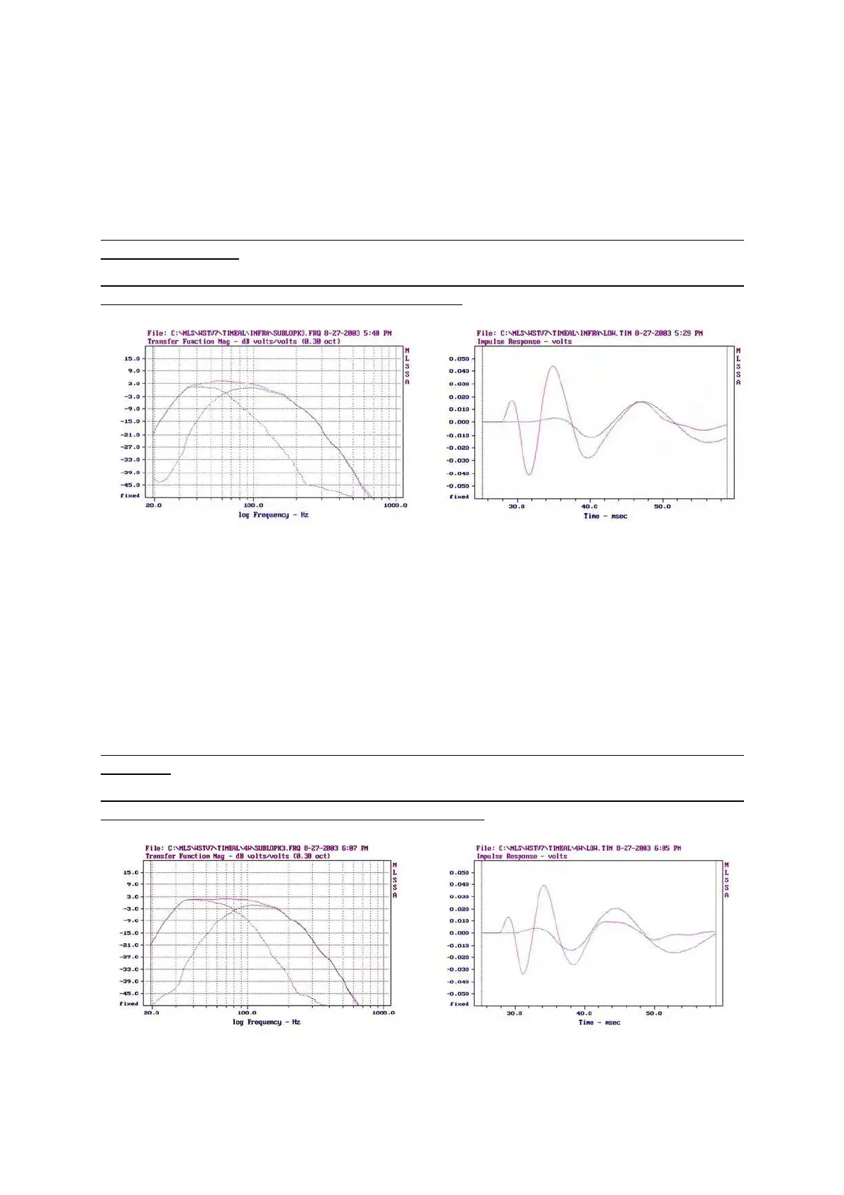 80 Hz crossover point (but this is a matter of personal taste and program material). Venue acoustics
