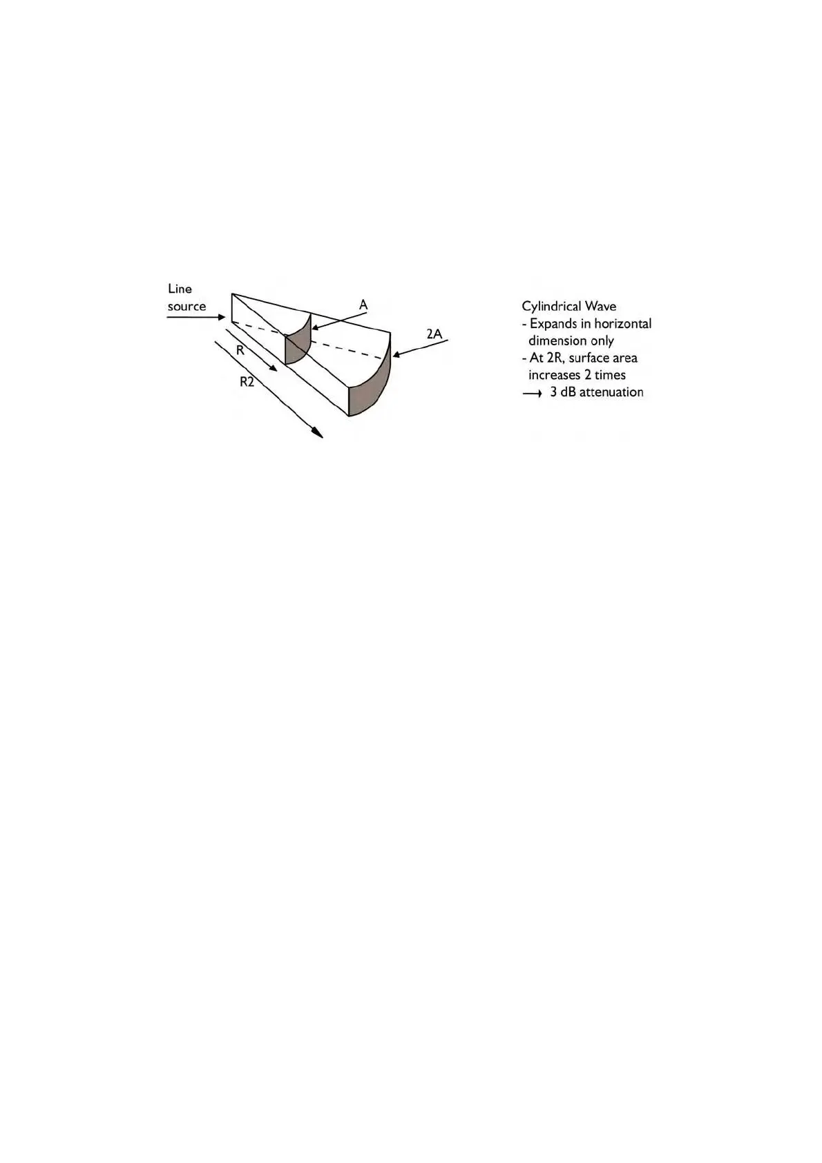 two dimensions, thus producing a SPL attenuation of 6 dB with doubling of distance. In cylindrical