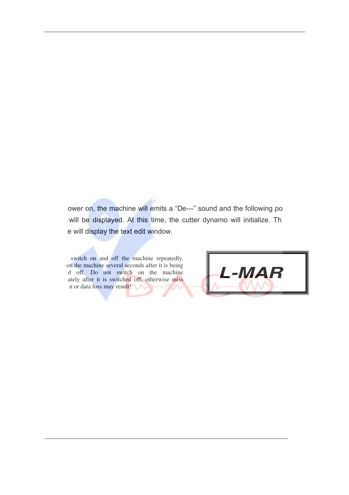 Upon power on, the machine will emits a “De---” sound and the following power-on