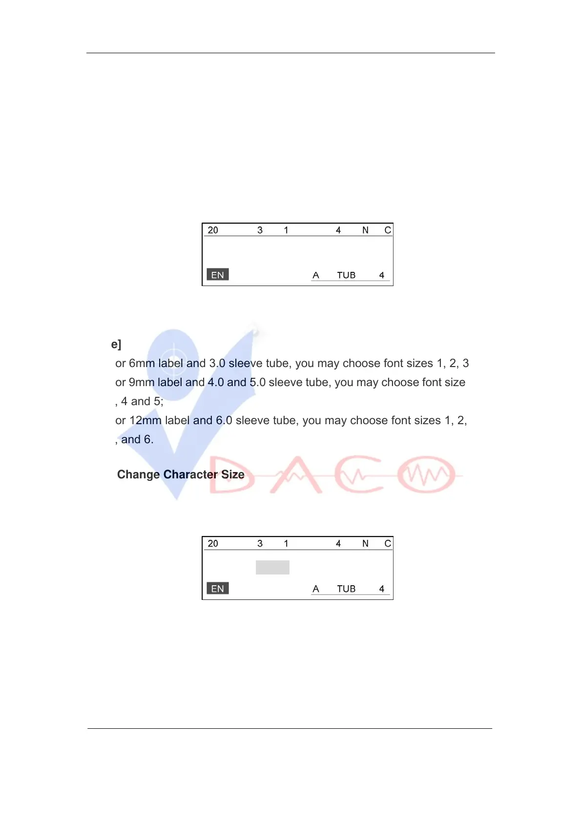 For 6mm label and 3.0 sleeve tube, you may choose font sizes 1, 2, 3,4;