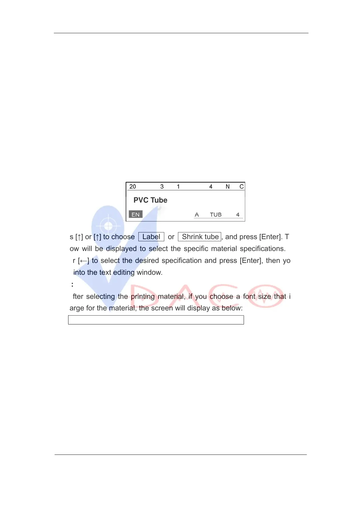 Press [↑] or [↑] to choose Label or Shrink tube , and press [Enter]. Then a