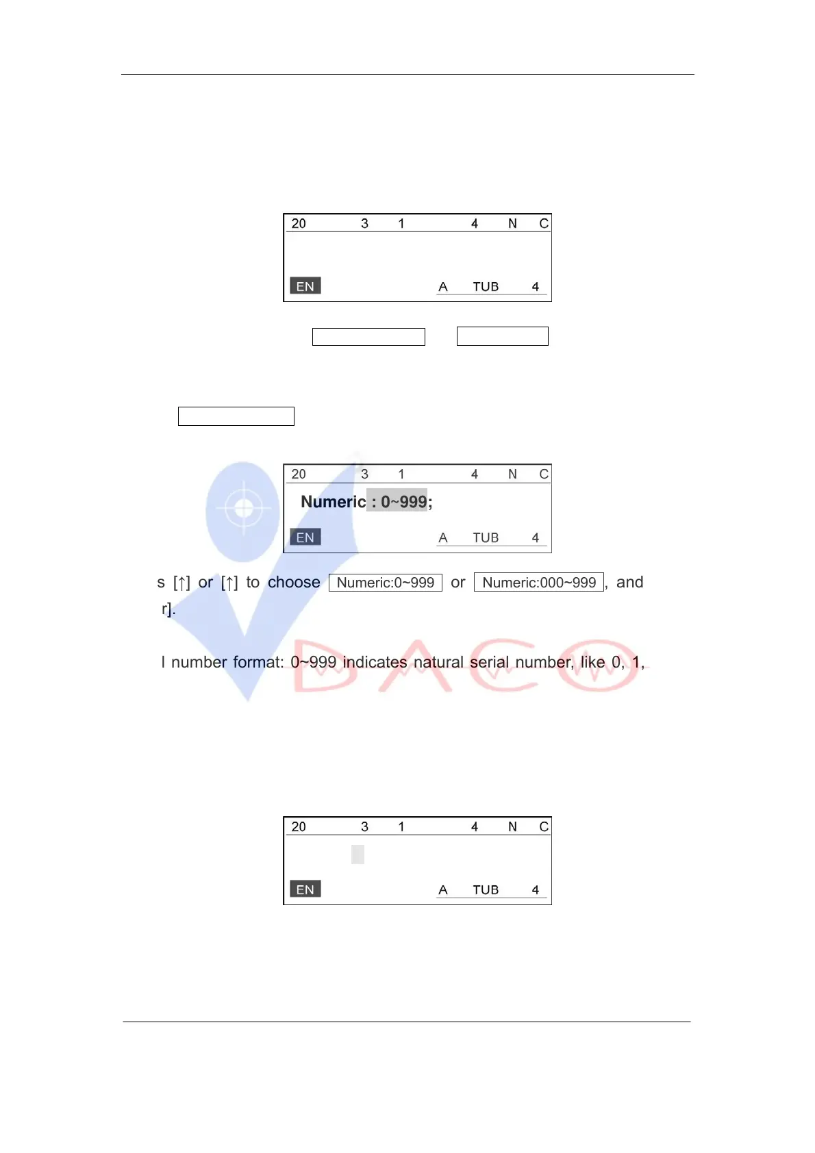 Press [↑] or [↑] to choose Numeric:0~999 or Numeric:000~999 , and press