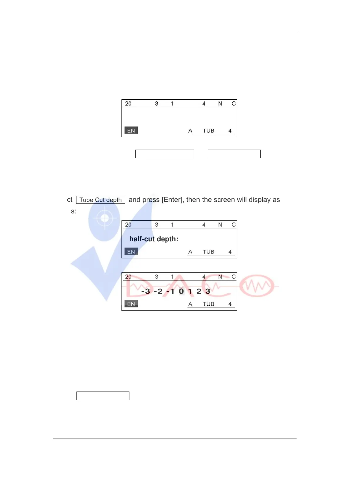 Select Tube Cut depth and press [Enter], then the screen will display as