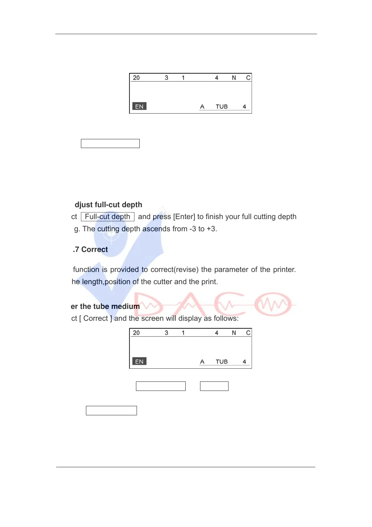 Select Full-cut depth and press [Enter] to finish your full cutting depth
