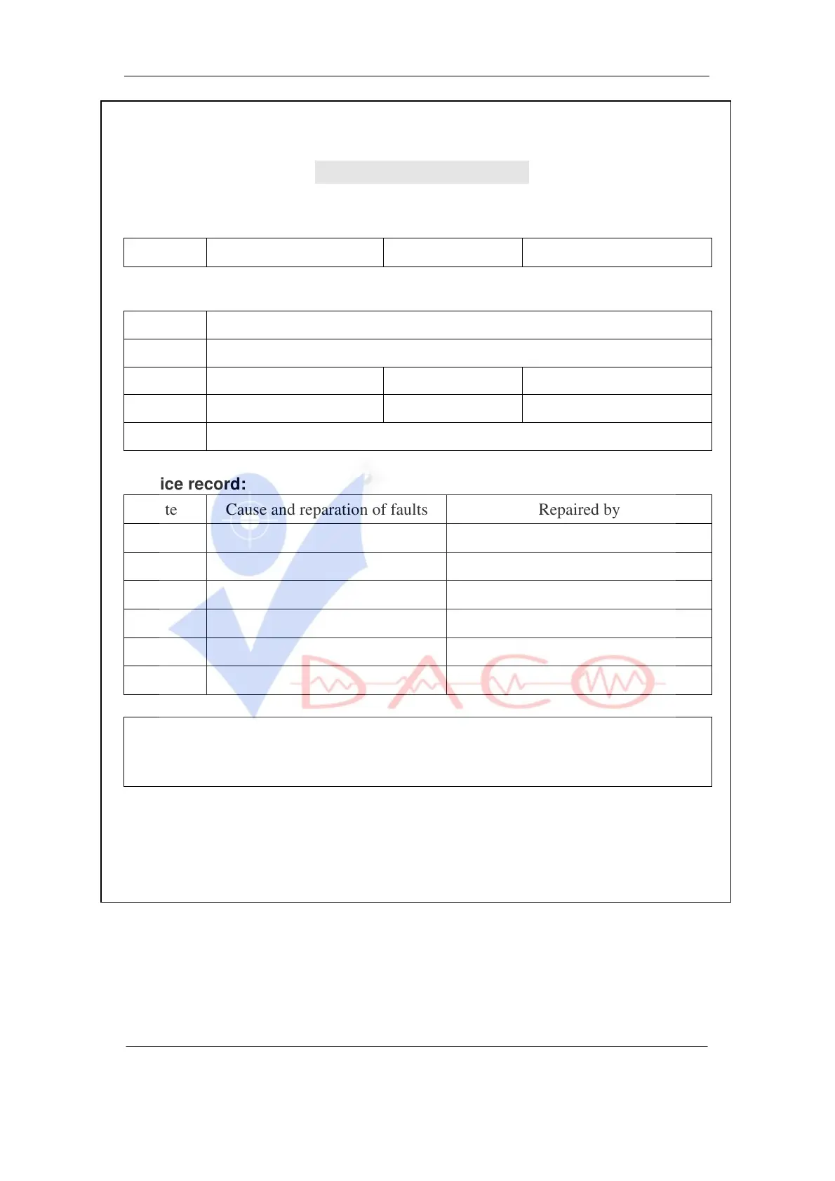 Date Cause and reparation of faults Repaired by