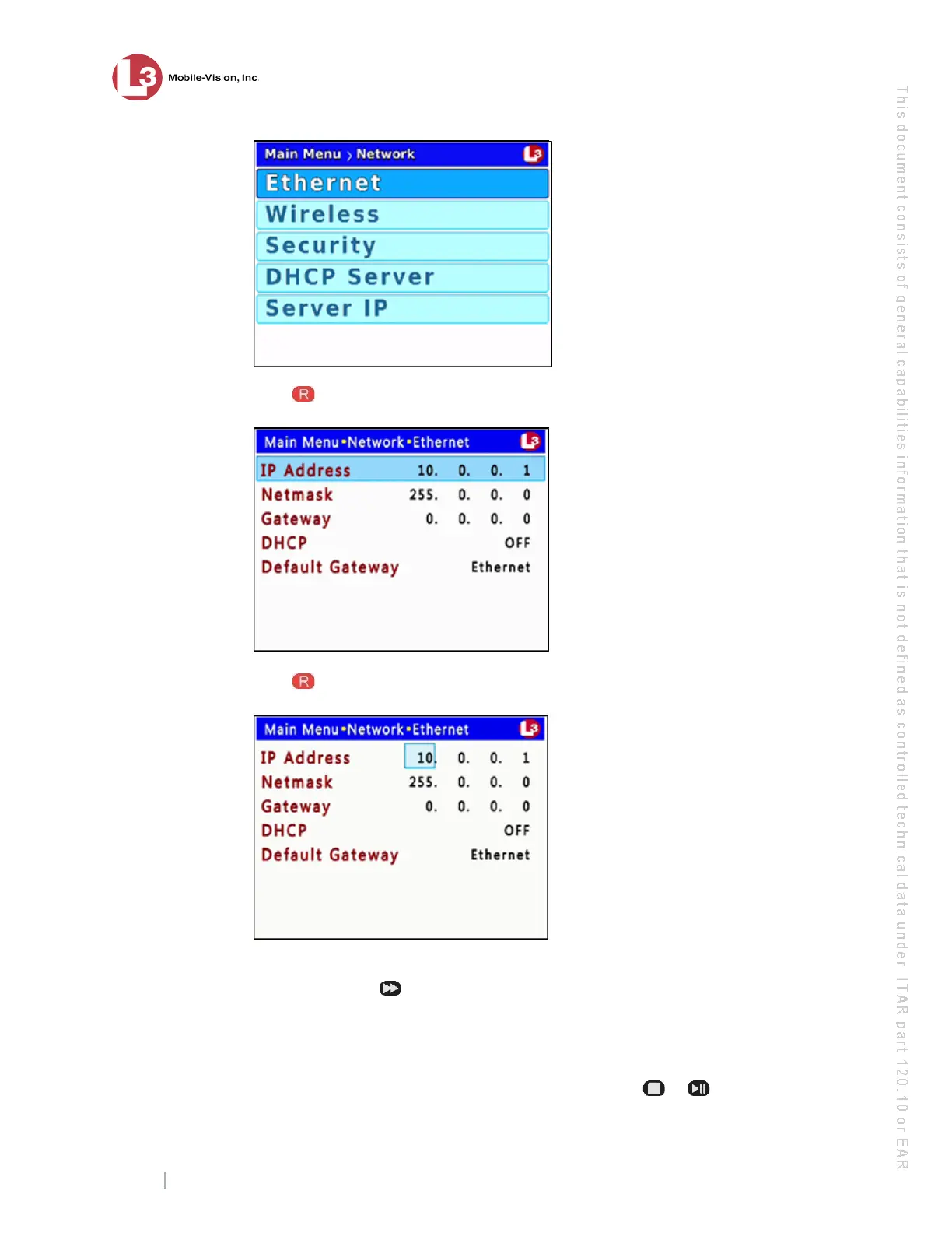 ess to select the Ethernet option. The Ethernet screen displays.