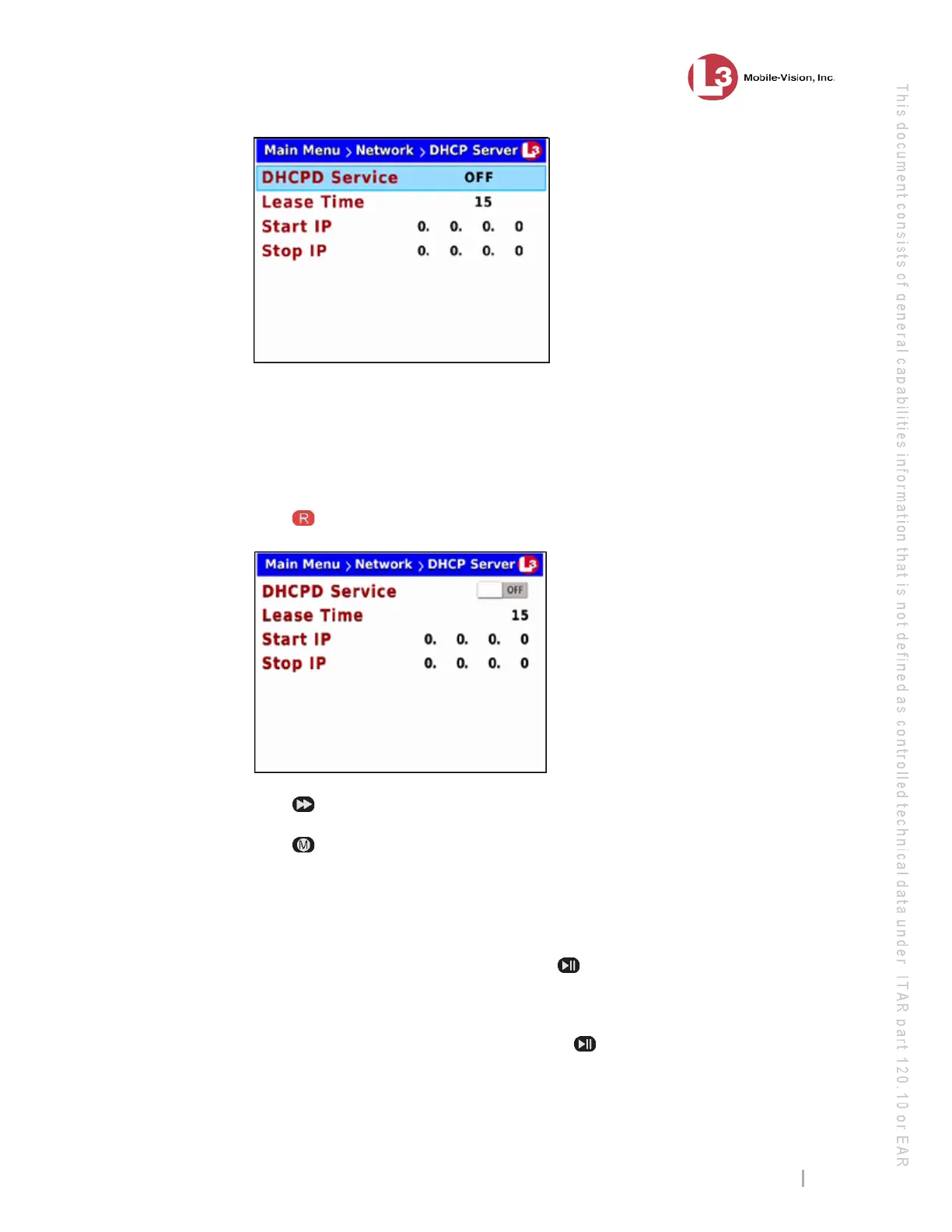 11 To keep the current Lease Time value, press twice to advance to the Start IP field.