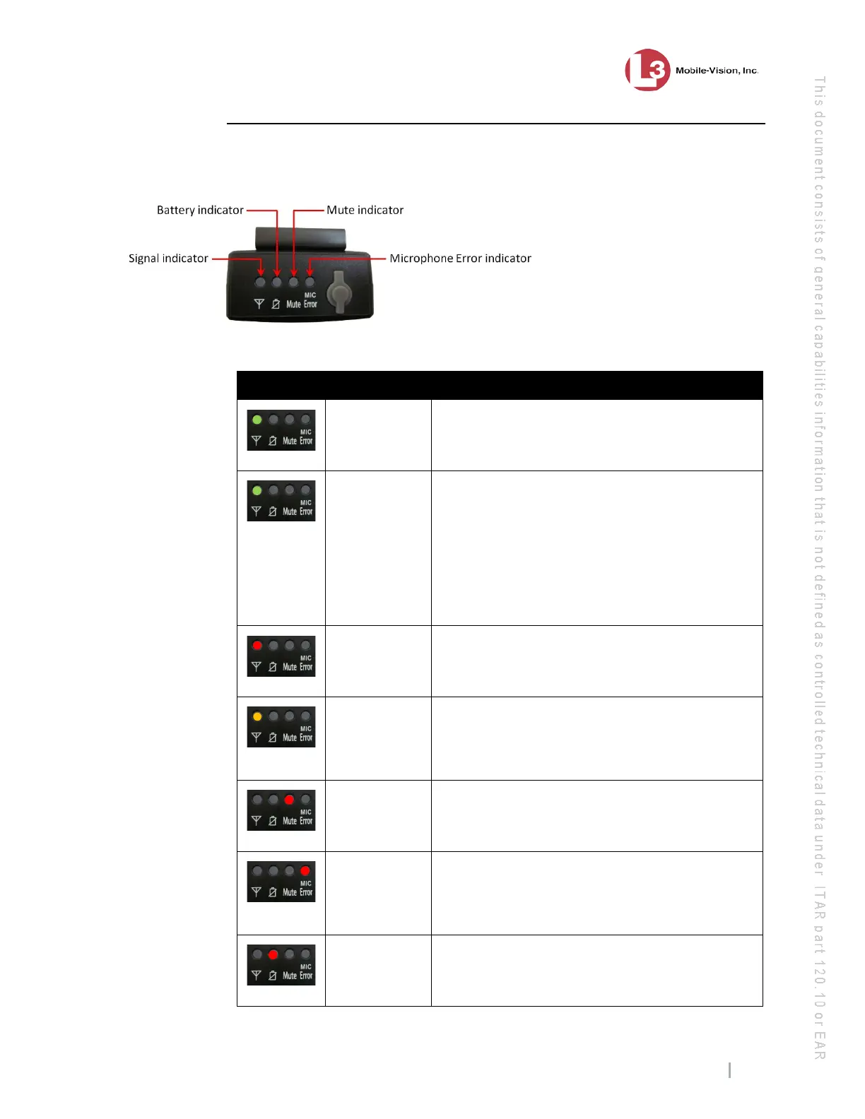 These light indicators and their meaning(s) are described in the following table.