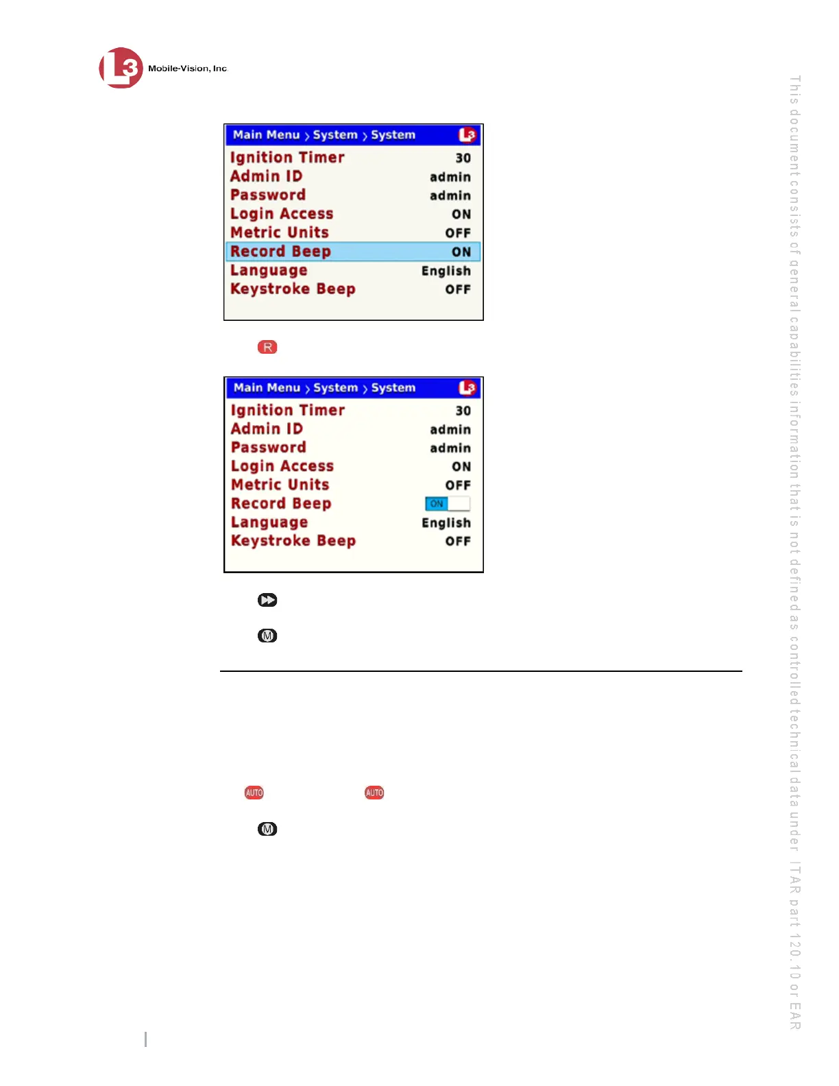 ress to select the Record Beep field.