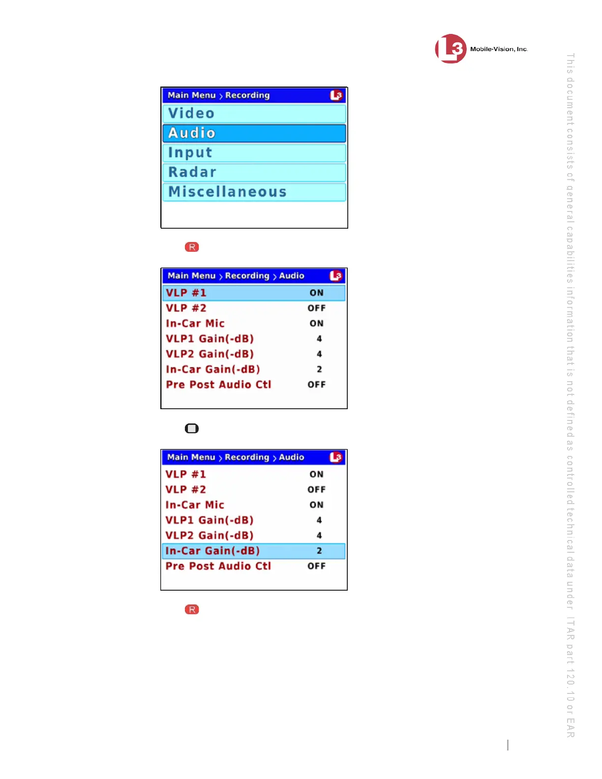 ess two times to advance to the In-Car Gain(-dB) field.